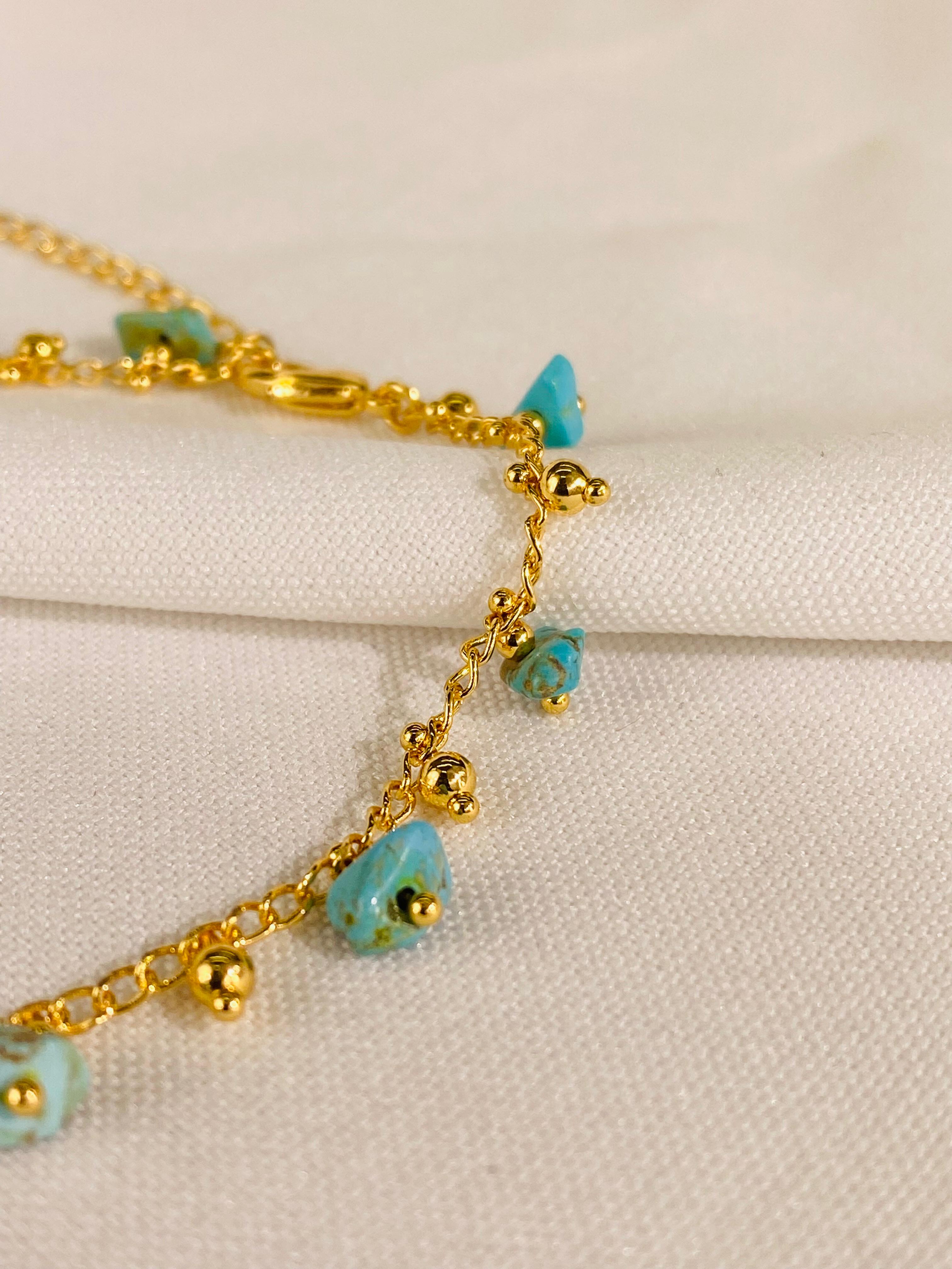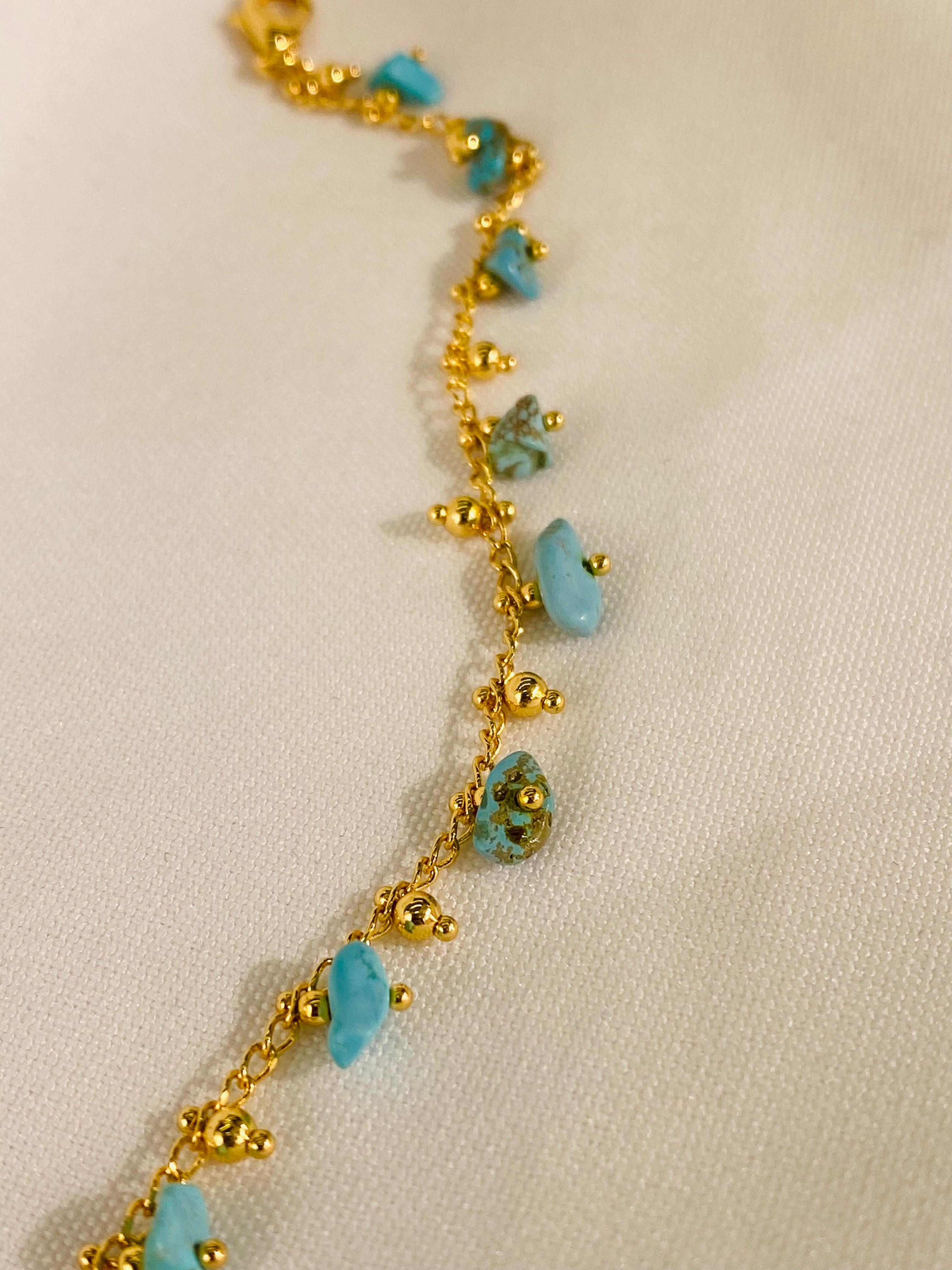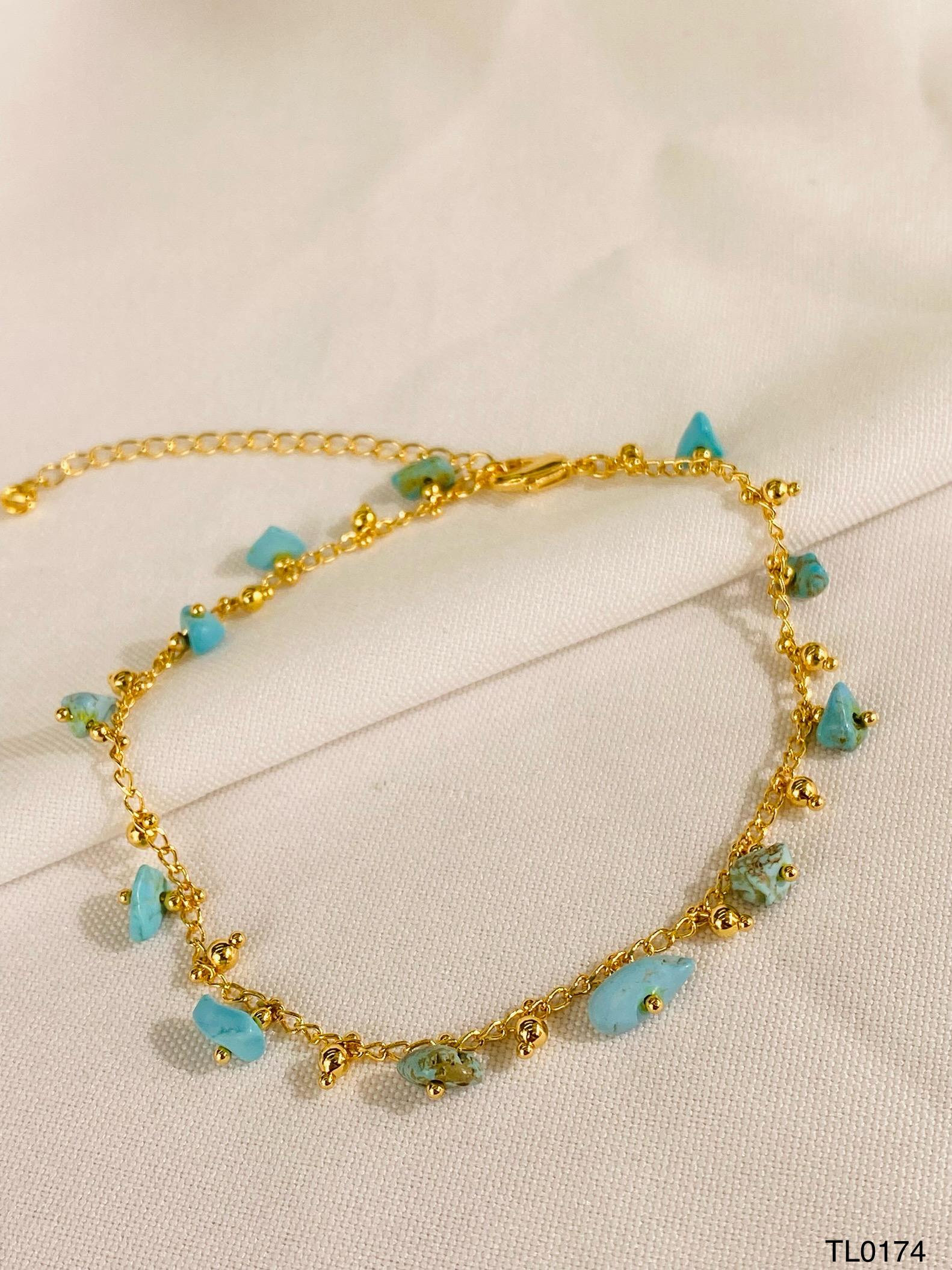 Tobillera elaborada con piedras naturales, ideal para uso diario o para complementar looks frescos y modernos. Su diseño versátil permite combinarla fácilmente con sandalias, tenis o calzado abierto, aportando un toque natural y elegante.
