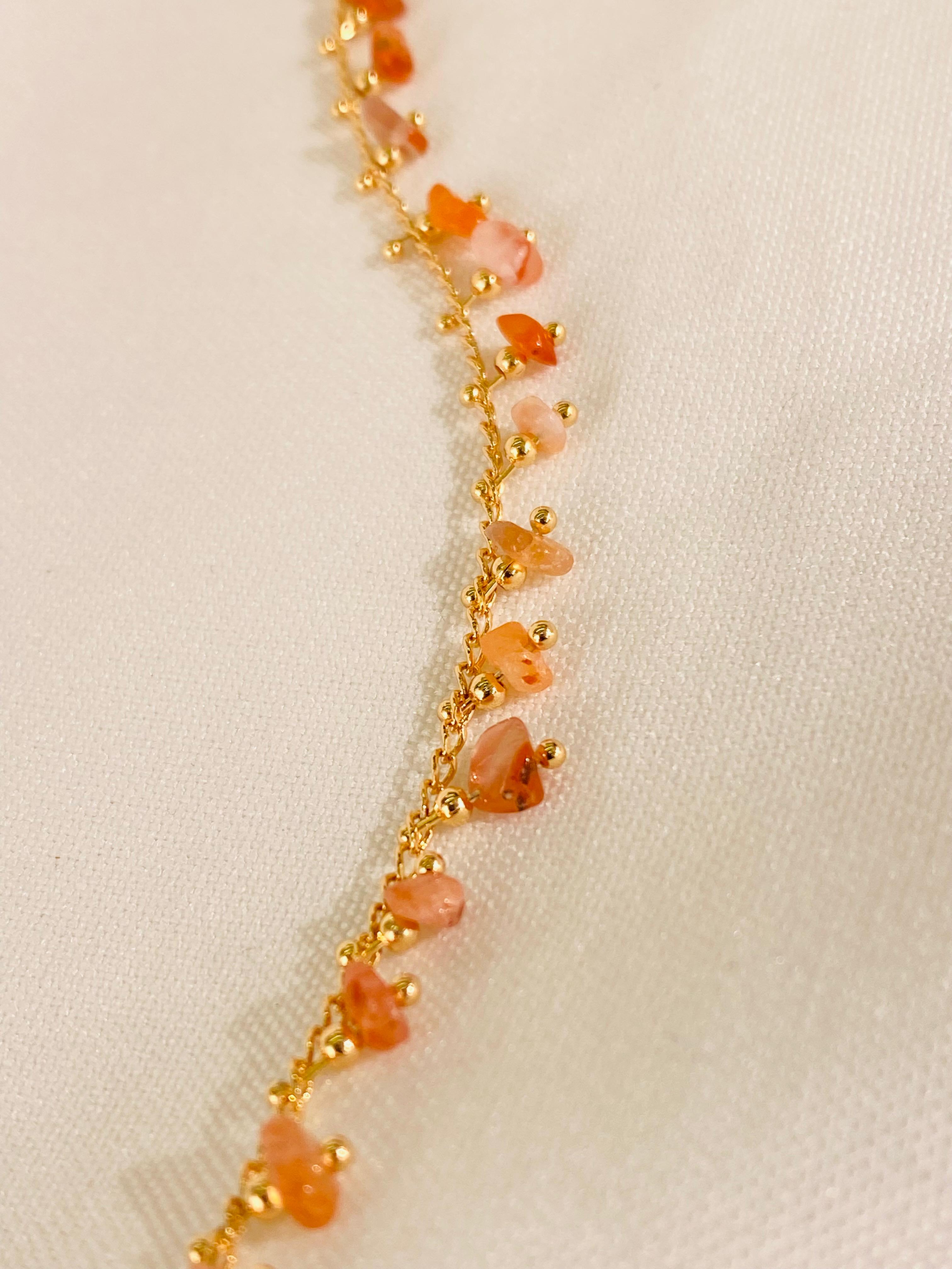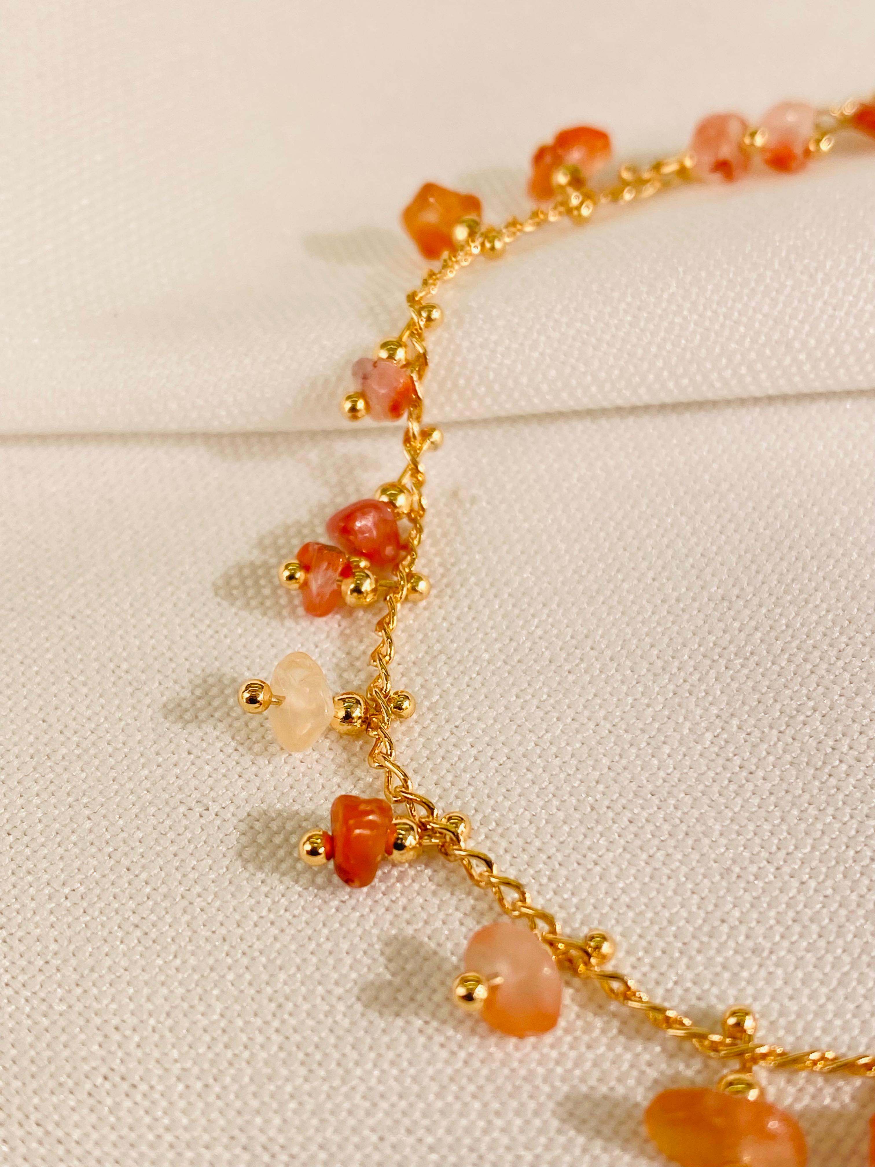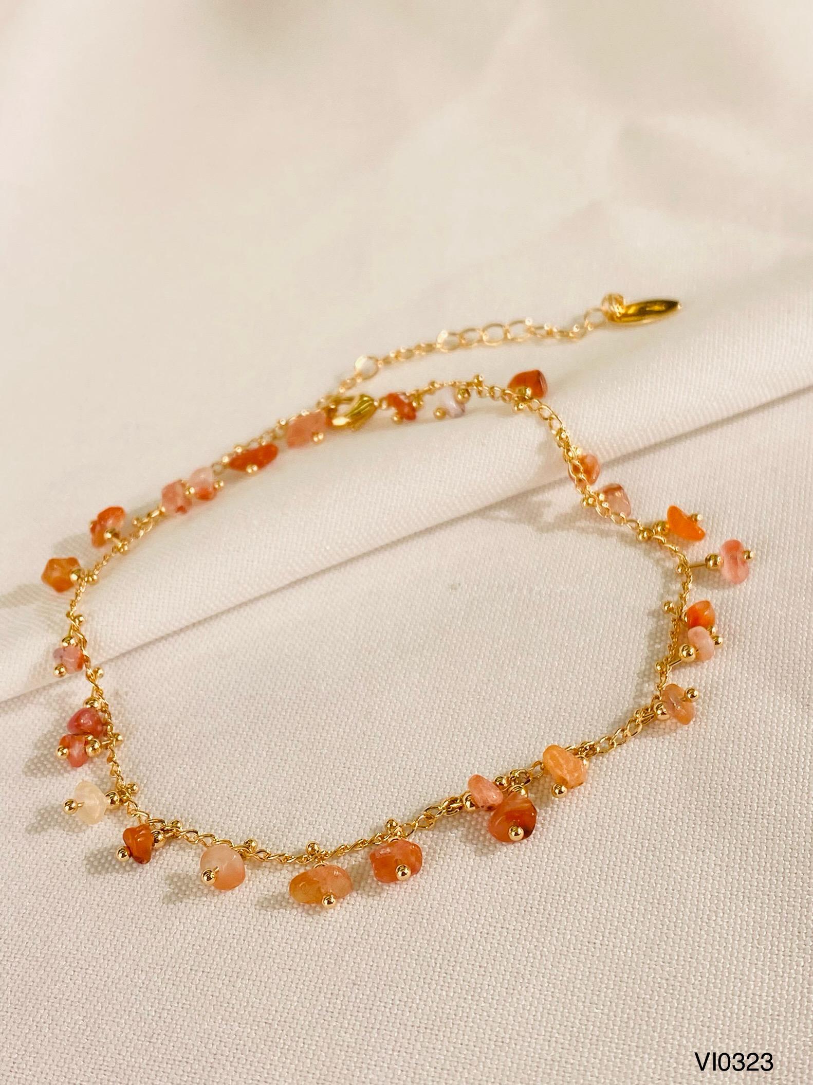 Tobillera elaborada con piedras naturales, ideal para uso diario o para complementar looks frescos y modernos. Su diseño versátil permite combinarla fácilmente con sandalias, tenis o calzado abierto, aportando un toque natural y elegante.